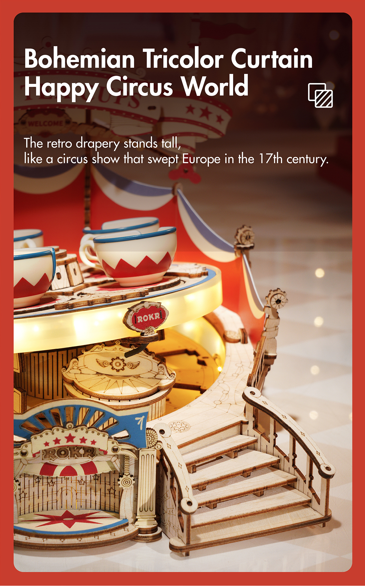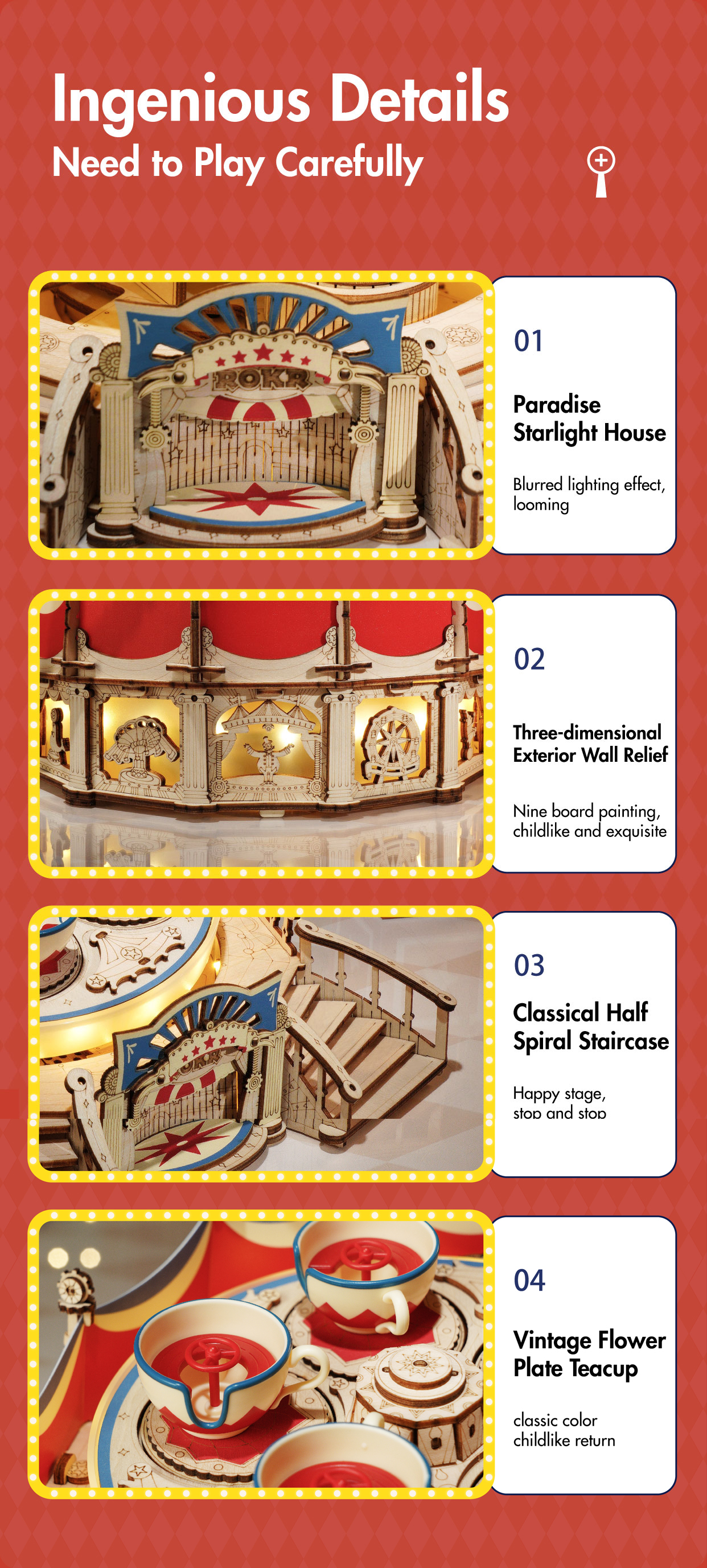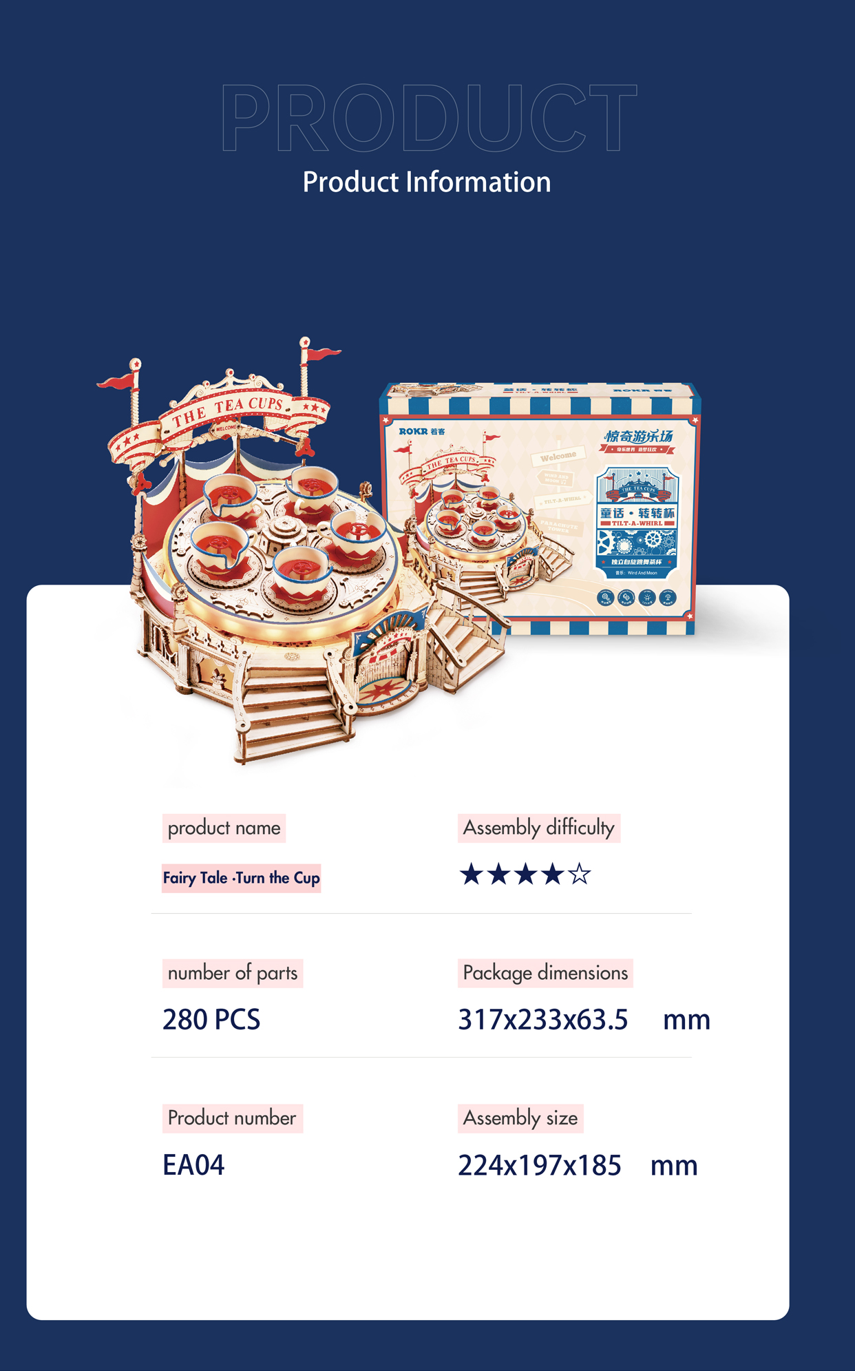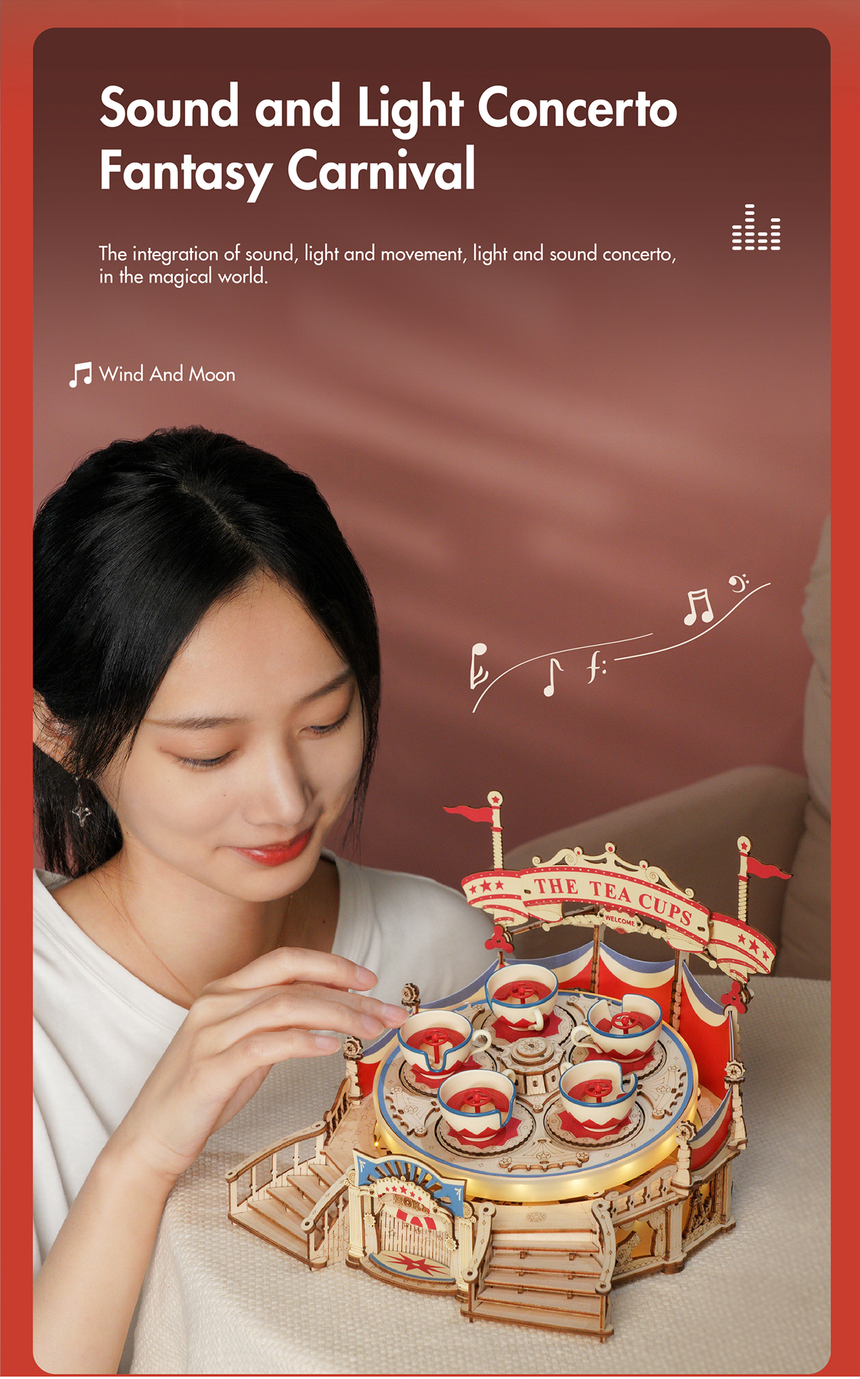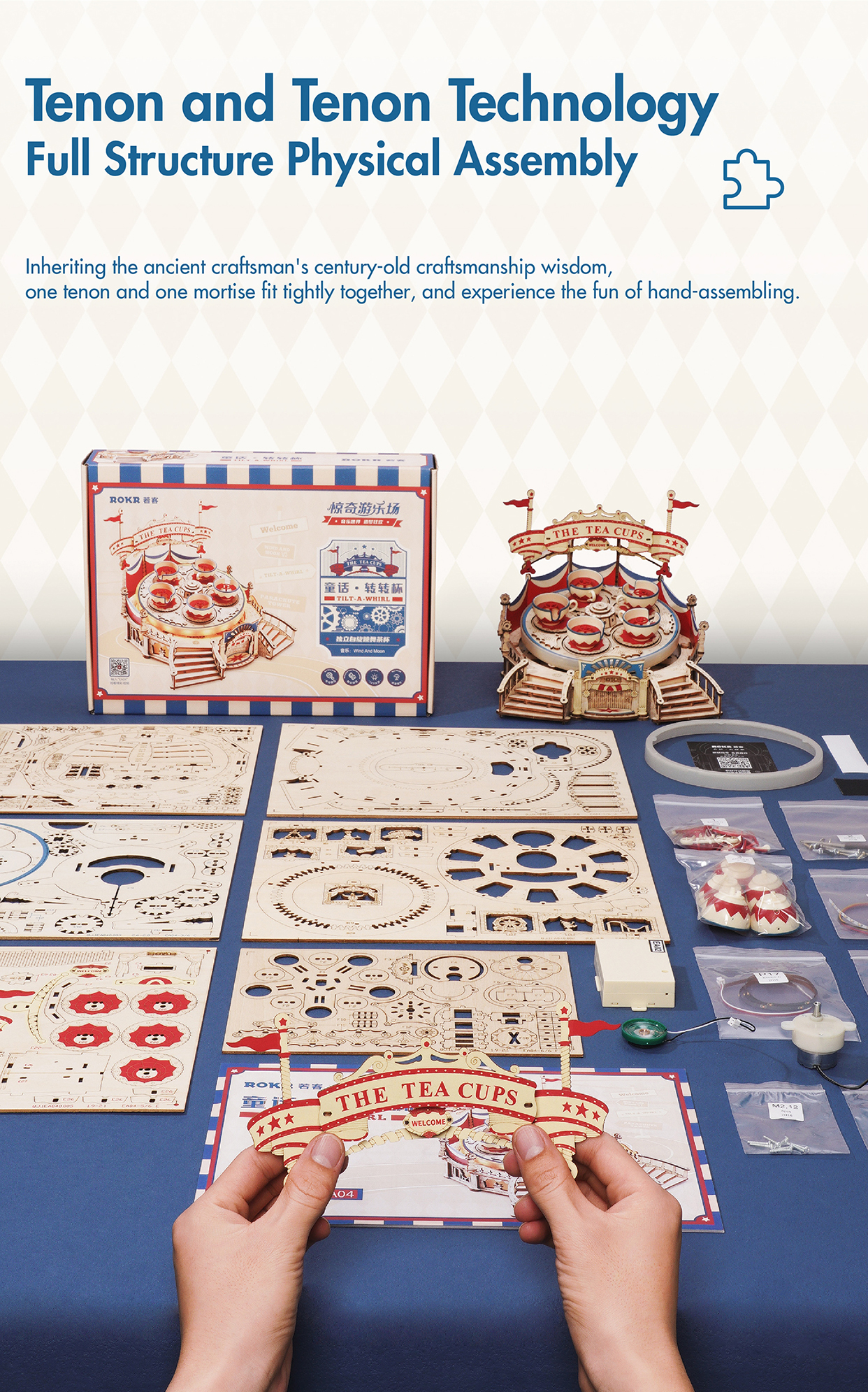 Robotime RokrTilt-A-Whirl DIY Music Box Building Block Amusement Park Series For Kids Adults Easy Assembly 3D Wooden Puzzle EA04