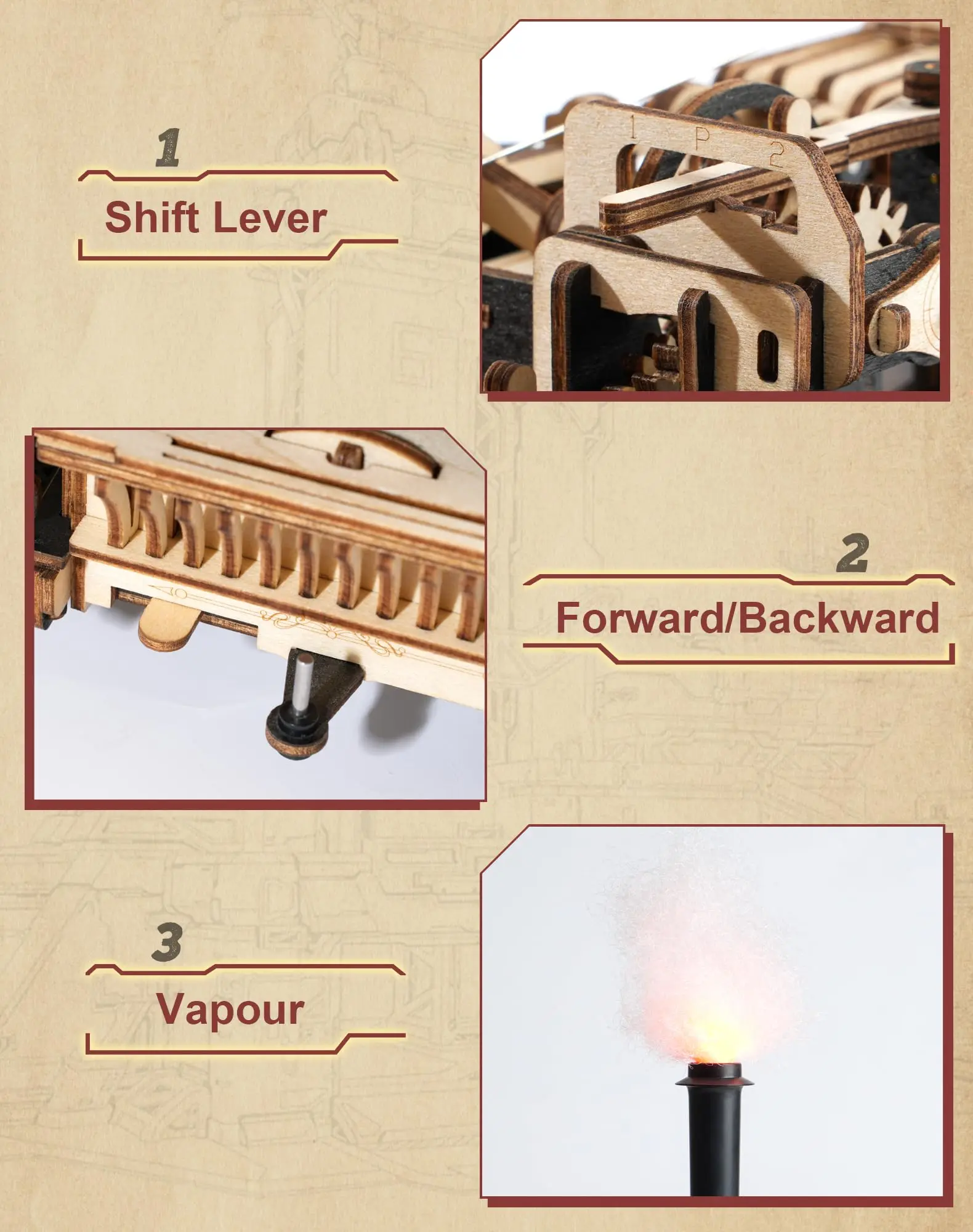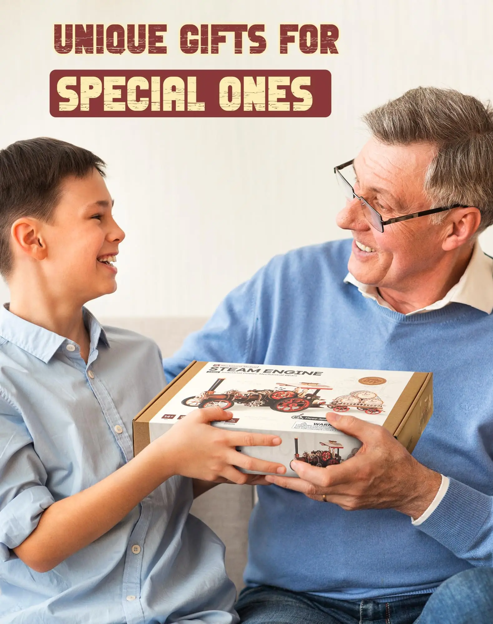 ROKR 3D Wooden Puzzle Car Model Steam Engine Mechanical Teens Kids Birthday Gift